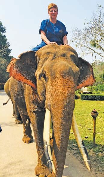 Marcia Pilgeram riding an elephant in Thailand. Courtesy photo.