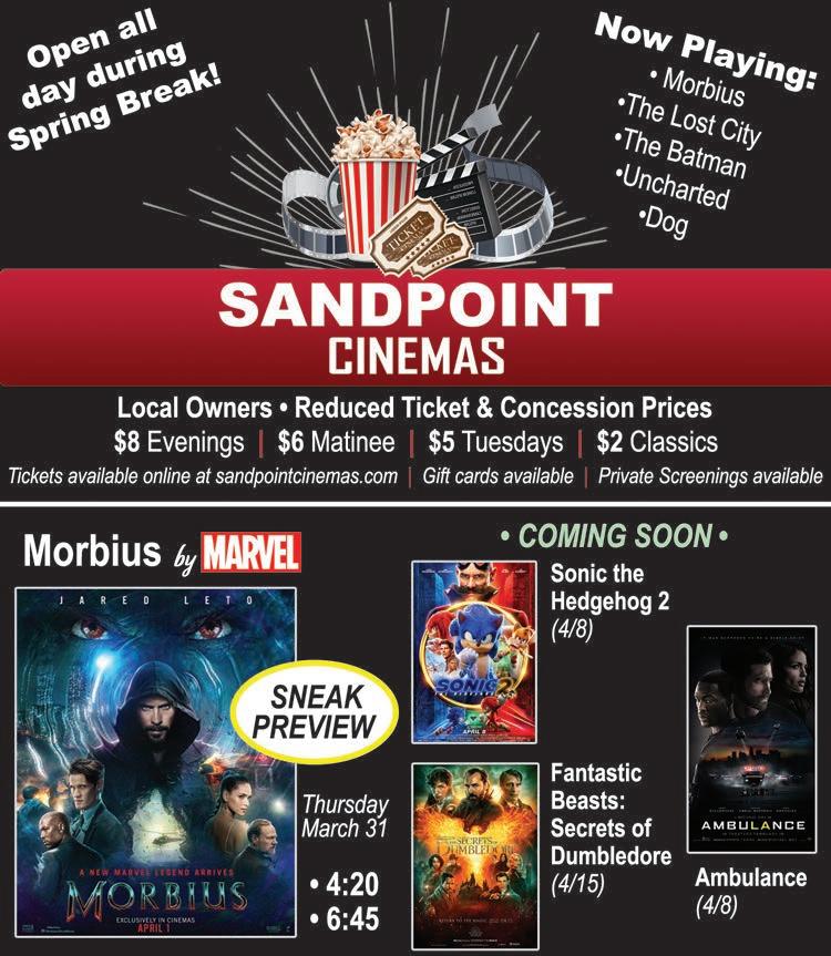 For more information visit bonnerhousing.org. The Tuesday, April 5 Sandpoint Planning and Zoning Commission meeting begins at 5:30 p.m. at the Sandpoint City Hall (1123 W. Lake St.) For more information, and to access the meeting via Zoom, go to sandpointidaho.gov and click on “Meetings” on the homepage.