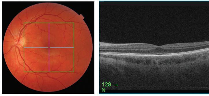 Right: A traditional top down image of a retina (left) compared to the new image (right) which shows layers and depth. Photo courtesy of Topcon.