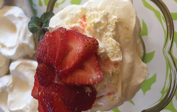 This lovely dessert was first created in New Zealand and named to honor the visiting Russian ballerina, Pavlova. It is simple, yet elegant and the meringue, which is sweet and crispy and light can be baked ahead. Meringue will keep in a tightly sealed container at room temperature, or individually wrapped, for up to a week if your house is not humid.