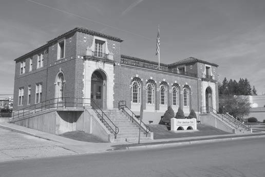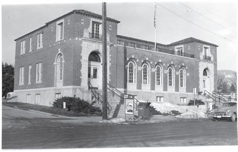 Second Avenue and Alder Street, looking northwest. The old Sandpoint Post Office, built around 1927. It was altered to be the library in the 1960s. The Bonner County Historical Society was housed in the basement until the 1970s. It was also the State Office of Mental Health in the basement until 1974