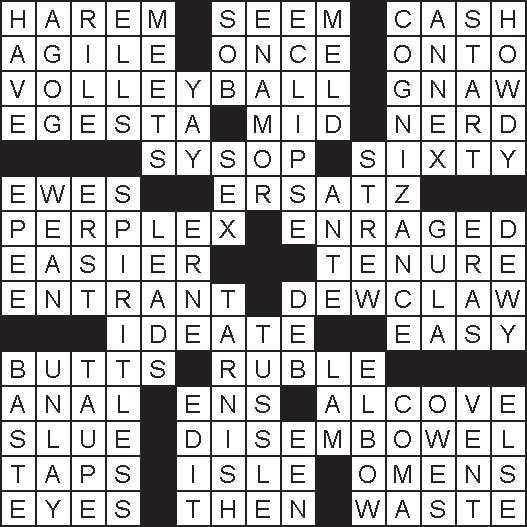 A sport involving a ball and a net 19. Chew 20. Excrements