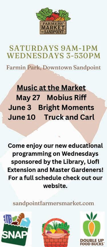 Among Sandpoint’s bestkept secrets are the worldclass musicians who choose our town for their home base. There’s something beautiful about the commonplace times and places these gifted artists share their work. In this week’s offerings, Truck Mills and Carl Rey will play an open-air, mid-morning slot at the Sandpoint Farmers’ Market, providing the soundtrack to strolling shoppers in Farmin Park. The duo will play old-