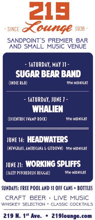 Pamela Jean, Connie’s, May 30 Sugar Bear, 219 Lounge, May 31