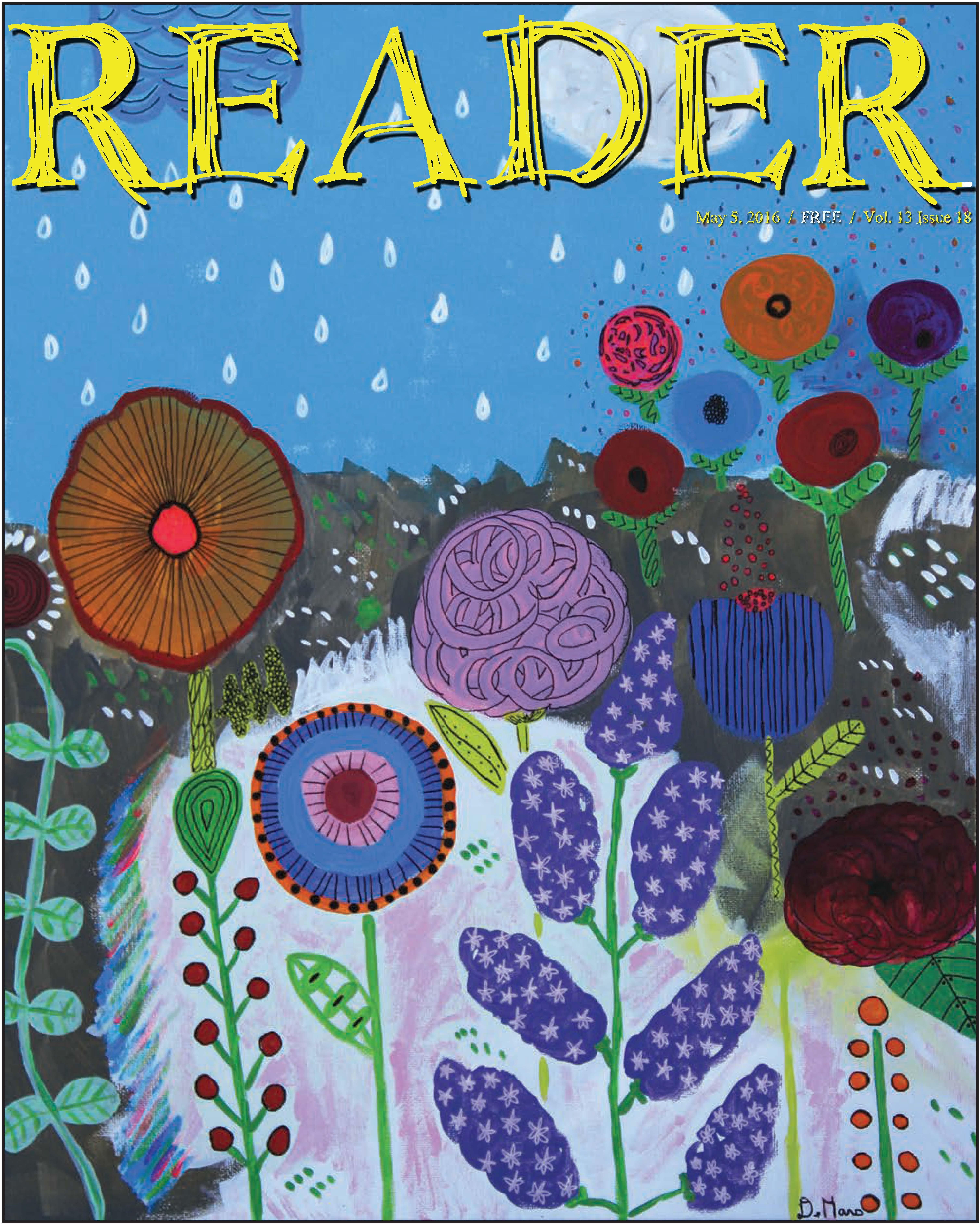 The Reader is printed on recycled paper using soy-based ink. Leftover copies are collected and recycled weekly, or burned in massive bonfires to appease the gods of journalism. Free to all, limit two copies per person.