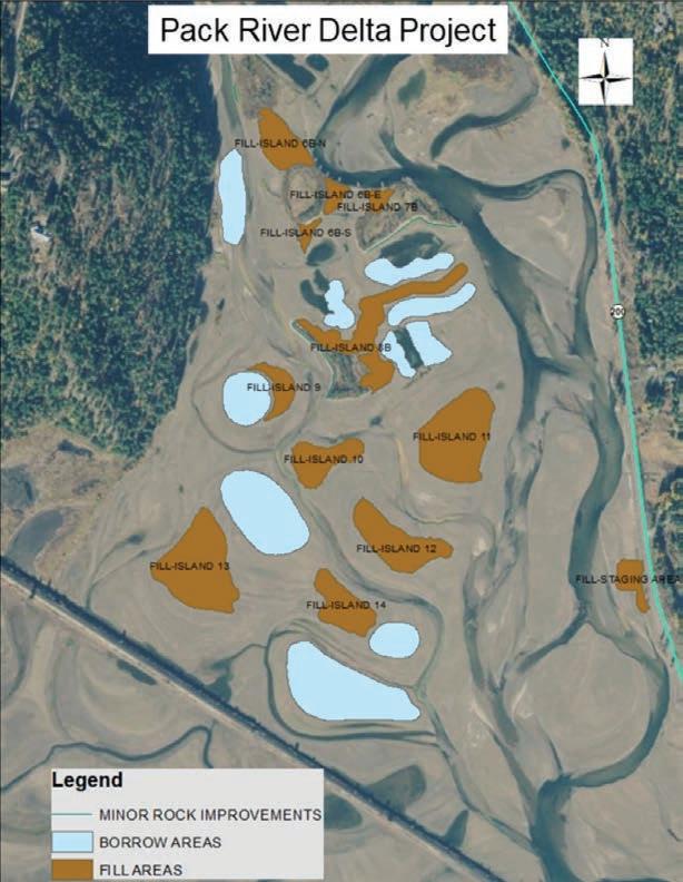 Contractors began work Nov. 13 on Phase 2 of the Pack River Delta wildlife restoration project, which includes the addition of eight islands and 10 borrow areas. The work encompasses the central and southern portions of the delta — north of the BNSF railroad line — which are part of the Pend Oreille Wildlife Management Area, co-managed by the Idaho Department of Fish and Game and the U.S. Army Corps of Engineers.