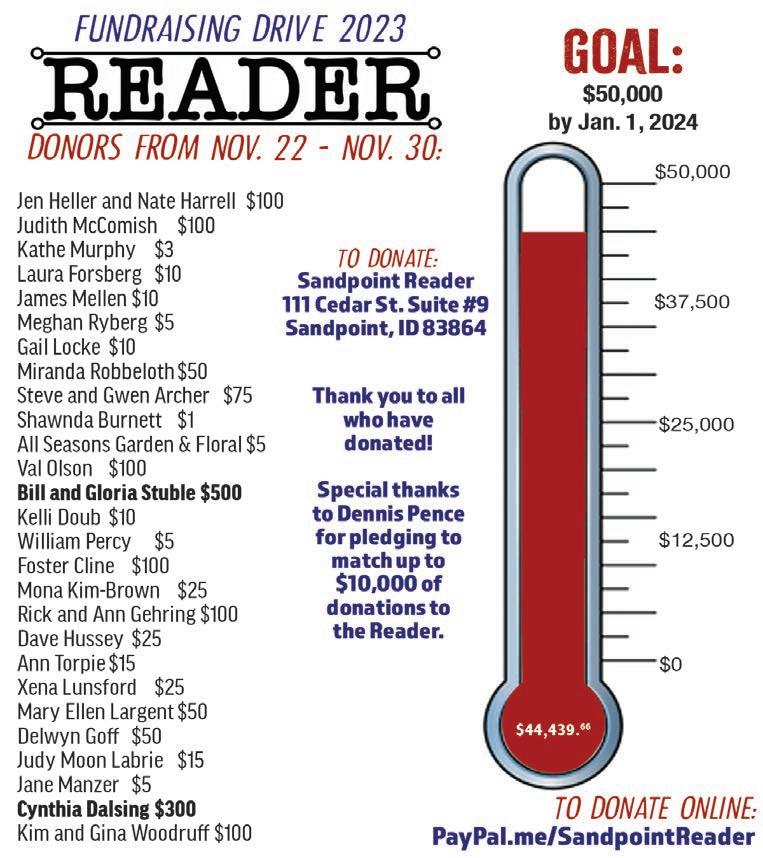 The Sandpoint Reader welcomes letters to the editor on all topics.