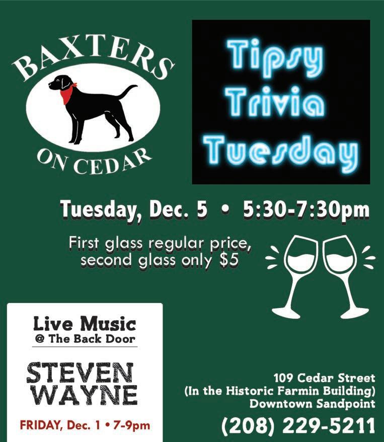There are a lot of great events going on this week. The Bonner County Historical Society and Museum is celebrating the 90th anniversary of the end of Prohibition on Tuesday, Dec. 5 at the 219 Lounge. It involves booze and history — which are two of our favorite things here at the Reader. It’s also a fundraiser, so come armed with a few bucks to toss in the hat (see Page 15 for more info).