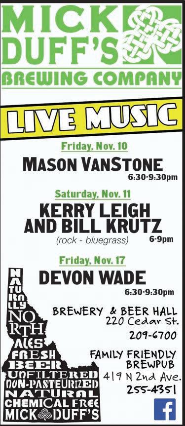 Truck Mills, Idaho Pour Authority, Nov. 10 Ron Kieper Band, Pend d’Oreille Winery, Nov. 10