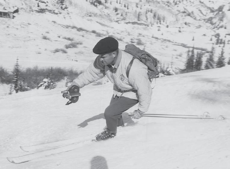 A photo of Warren Miller in the 1950s during filming. Photo courtesy Warren Miller Entertainment.