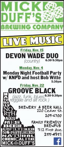that, with five more gigs currently scheduled through January: a Dec. 7 return to Eichardt’s; NoN’s first outof-town show at the Symes Hotel in Hot Springs, Mont. on Jan. 11; another 219 show Jan. 18; and two appearances Jan. 24 and Jan. 29 at Taps on Schweitzer Mountain.