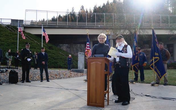 Karen Roetter, the regional director for Crapo’s Coeur d’Alene office, presented McIlnay the award on Nov. 11 at the Veterans Memorial Plaza in Bonners Ferry in front of a crowd of nearly 100 people. Roetter listed the many ways McIlnay has supported local veterans, from assisting with car repairs to helping families prepare for funerals.