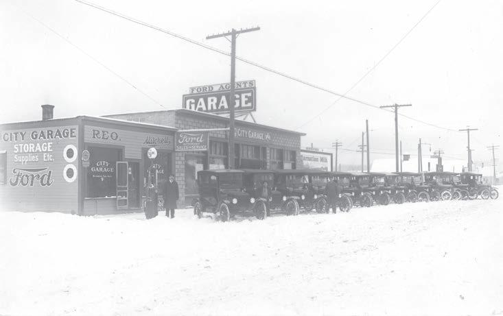 The City Garage at 405 Cedar St. in Sandpoint. W.E. Jaeger is listed as proprietor as of 1923, so it’s a fair guess that Jaeger bought the property from Foster, who owned the garage prior to 1923. There are 12 autos lined up out front.