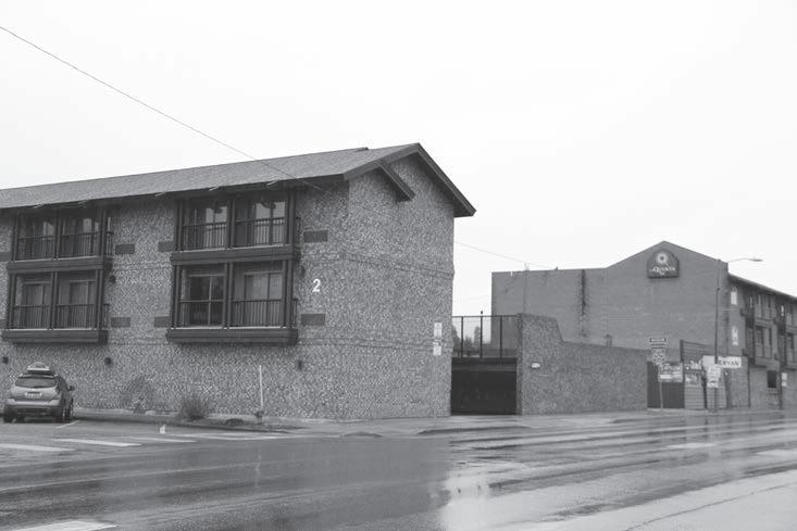 The same view today. The eastern side of La Quinta Inn currently occupies the space that was once the City Garage.