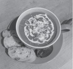 Ladle soup into warmed bowls, garnish with a dollop of Greek yogurt, chopped nuts and scallion tops.