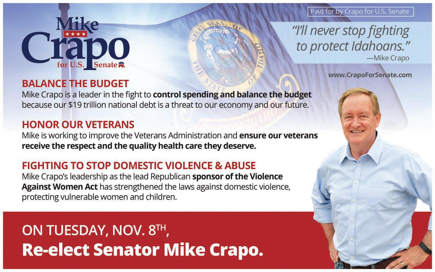 In other races, I have always had a tremendous amount of respect for Sen. Shawn Keough, who has an amazing amount of integrity. Sage Dixon is a dedicated politician who I respect for his devotion, but I don’t support his political views, so I also endorse Stephen Howlett in the State Rep. District 1B race. Also, I support Ken Meyers in the State Senate District 7 race.
