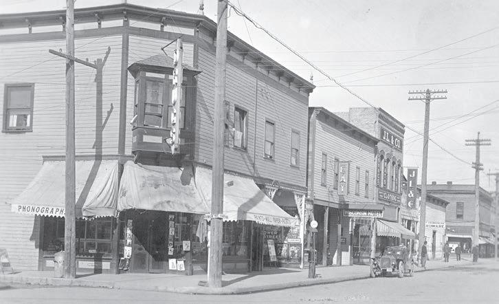 The northwest corner of Church Street and First Avenue in Sandpoint. Allen Brother’s Drugs was on the left corner building following by the Wisconsin Hotel.
