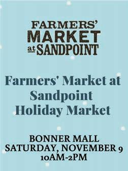 Before I go, don’t forget the SARS Ski Swap is Saturday, Nov. 9 from 9 a.m. to 2 p.m. at the Bonner County Fairgrounds. Why not head over to the last Sandpoint Farmers’ Market of the year for their special Holiday Market the same day at the Bonner Mall from 10 a.m. to 2 p.m.? Sounds good to me!