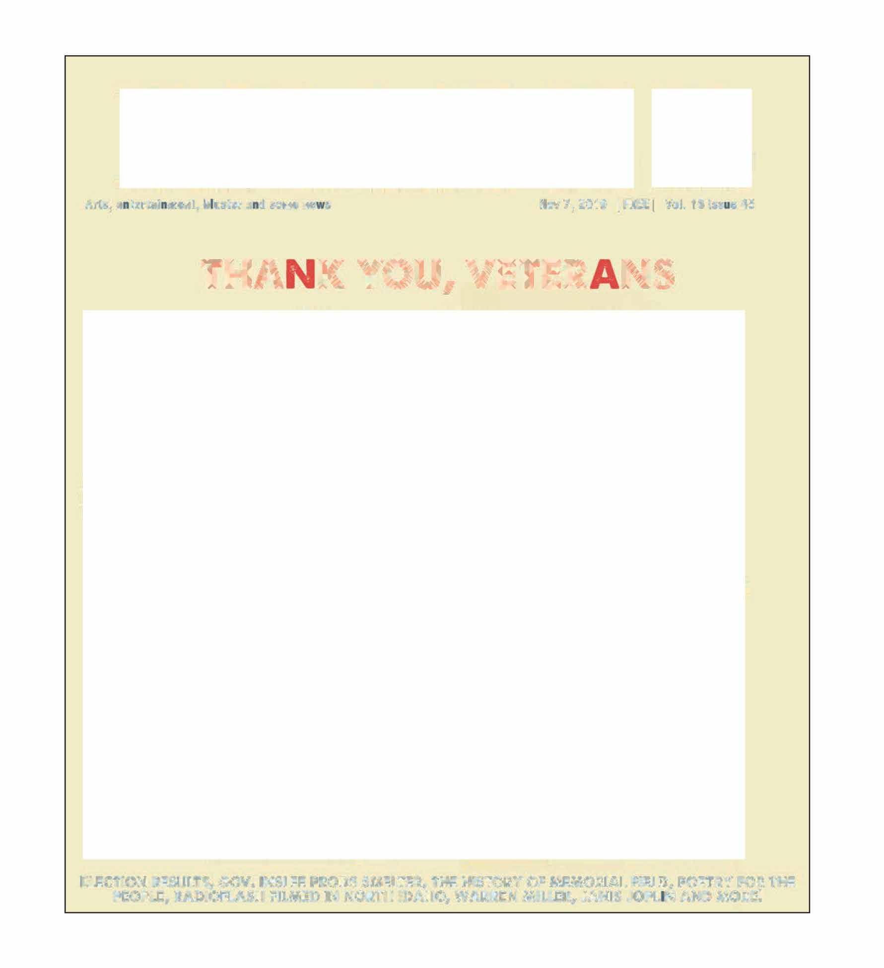 This week’s cover honors veterans for Veterans Day Nov. 11. Please, thank a vet today.
