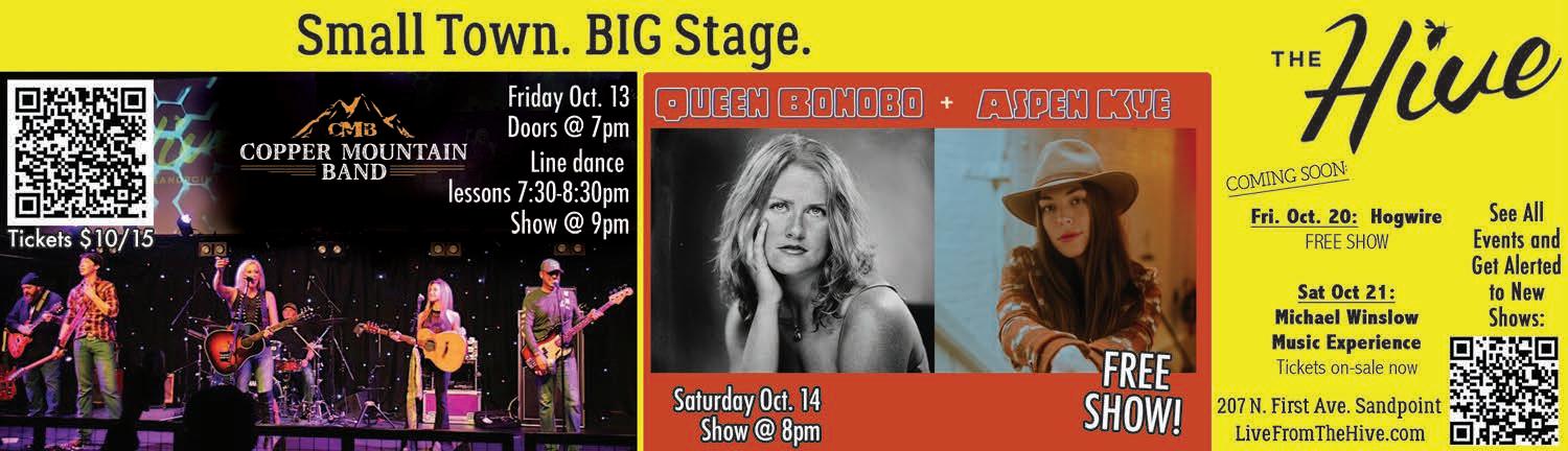 Those seeking a unique musical experience in Sandpoint can look no further than The Hive, which will host a special free dual show Saturday, Oct. 14 from 8-11 p.m. with Sandpoint’s own Queen Bonobo and Spokane artist Aspen Kye.