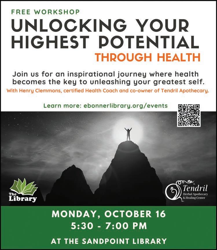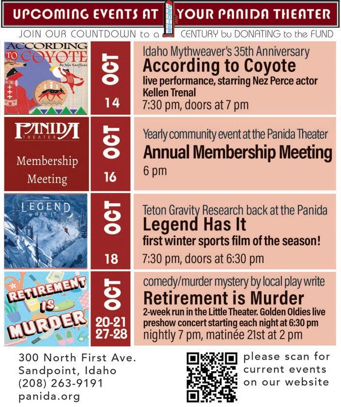 Next, we’re gently ramping up our Halloween-themed editions, as you might have deduced from the cover. We’re interested in hearing about your ghost stories for an upcoming edition. Send them to Staff Writer Soncirey Mitchell at soncirey@sandpointreader. com for consideration.