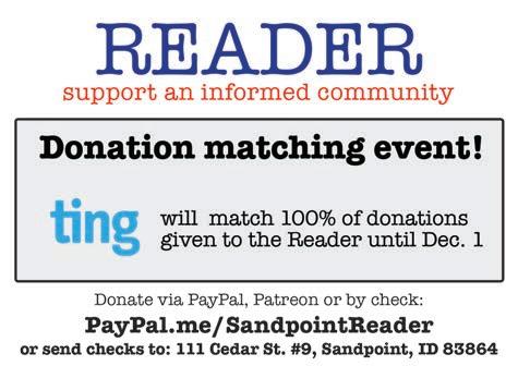 Check us out on the web at: www.sandpointreader.com Like us on Facebook.