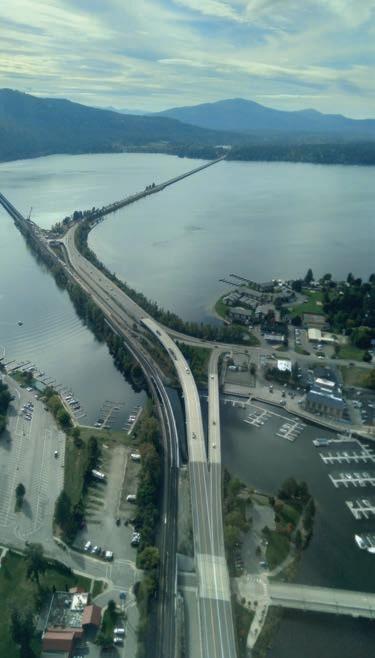 An aerial photo looking south down the Byway and Sand Creek in Sandpoint. Photo by Zach Hagadone.