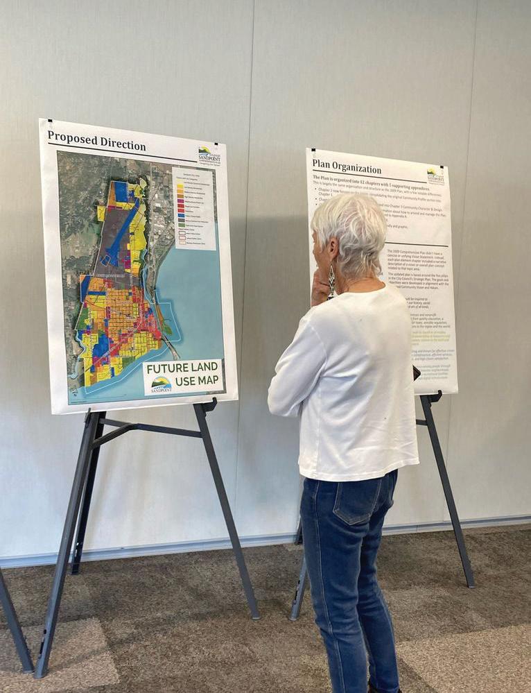 A member of the public reviews components of the comp plan at a previous workshop at City Hall. Photo by Zach Hagadone.