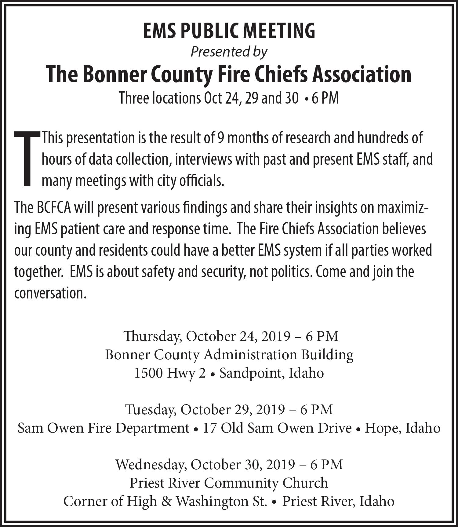 Serving on the committee will be McDonald, Bonner County Deputy Prosecutor Bill Wilson, and county residents John Maio, Glen Mercurio and Tina Johnson. When asked by an audience member Oct. 16 about the committee members’ “roles in the community and how long they’ve been here,” McDonald said, “that’s irrelevant.”