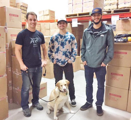 Now for the fun part! The warehouse team Bryant, Chase and Alex are showing me all of the fall and winter well-designed fashion essentials for the active dog in our neck of the woods. I love all of the colors. However, red is my favorite. My must-have items for the season are the Element Jacket, Zero Shock Leash, No-Pull Harness, Adventure Light (which can be seen three miles away), Adjustable Car Restraint (who knew that the new state law requires dogs to be properly restrained