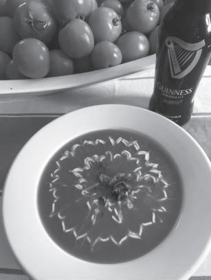 •Melt the butter in a heavy saucepan and add the bacon, carrot, leek and onion. Cover and cook about 10 minutes, until the vegetables sweat, but do not let them brown. Add the tomatoes and cook on low for 15 minutes. Add the stock, bring to a quick boil, and then turn down to a low simmer for an hour. Use an immersion stick or in small batches, a blender until soup is liquefied. Strain to remove skin and seeds.