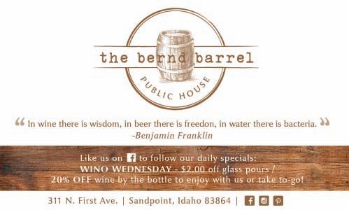 Also happening Saturday is the Oktoberfest, put on by the Greater Sandpoint Chamber of Commerce. The fun starts at noon and goes until 5 p.m., and is free. I’d be willing to bet you could find some good beer and grub there. But don’t take my word for it; find out for yourself. It all happens at the Granary Arts District by Evans Brothers Coffee.