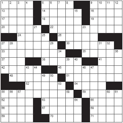 Aroma 37. Mayday 38. Mops 41. 52 in Roman numerals 42. Periods of discounted prices