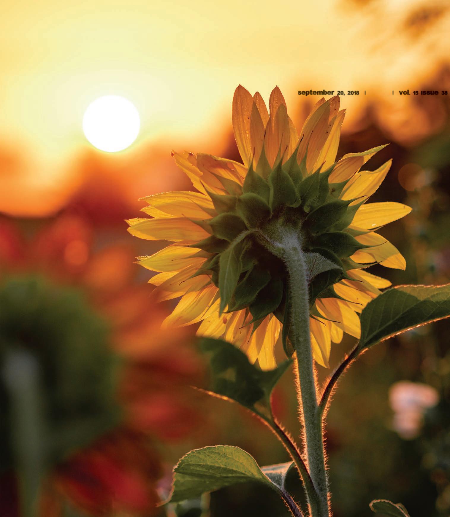 This week’s cover photograph was taken by Aaron Burden. I think this forlorn image of a sunflower saying goodbye to the sun captures this time of year perfectly.