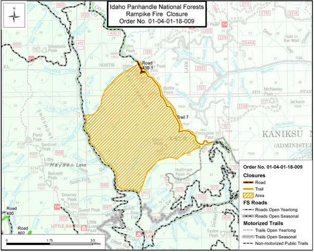 Top left: A recent map of the Cougar Fire closures,left, and a map of the Rampike Fire closures in the Coeur d’Alene Ranger District, right. Maps provided by U.S. Forest Service. Reporting by Lyndsie Kiebert.