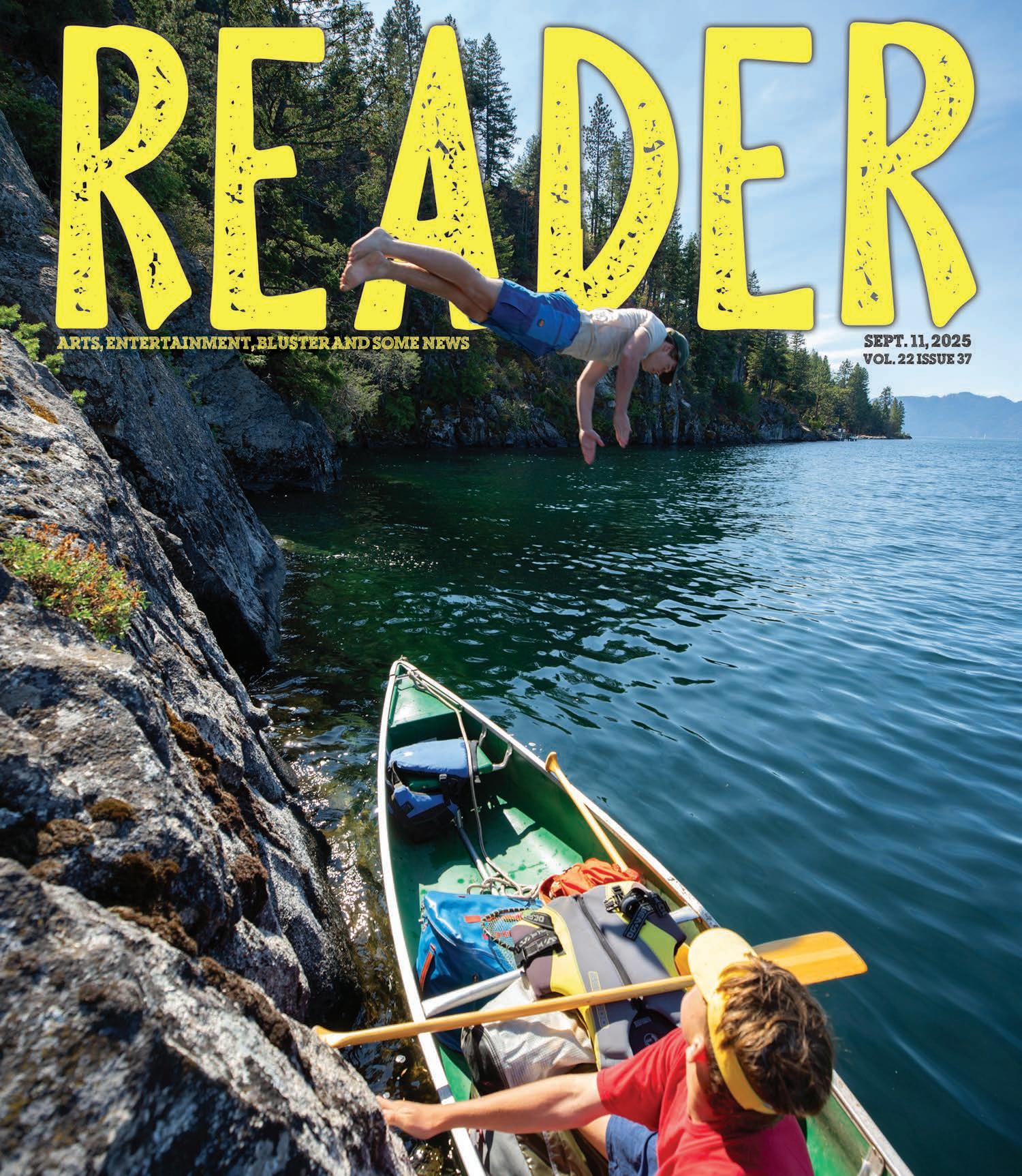 The Sandpoint Reader is a weekly publication owned by Ben Olson and Keokee. It is devoted to the arts, entertainment, bluster, politics and lifestyle in and around Sandpoint, Idaho. We hope to provide a quality alternative by offering honest, in-depth reporting that reflects the intelligence and interests of our diverse and growing community. The Reader is printed on recycled paper using soy-based ink. Leftover copies are collected and recycled weekly, or burned in bonfires to appease the gods of journalism. For back issues, contact the publisher. Free to all, limit two per person, please.