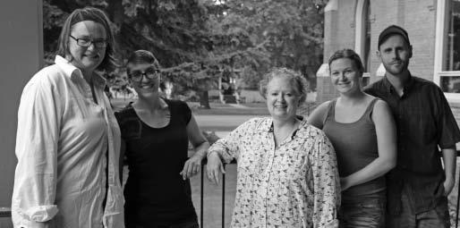 The cast of “No Service” (from left to right): Becky Campbell, C.J. Dowling, Kate McAlister, Madeline Elliot, Chris Herron (playwright).