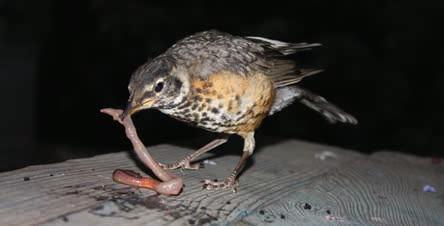 For dinner, Rick swallowed his first earthworm, which was as long as he was.