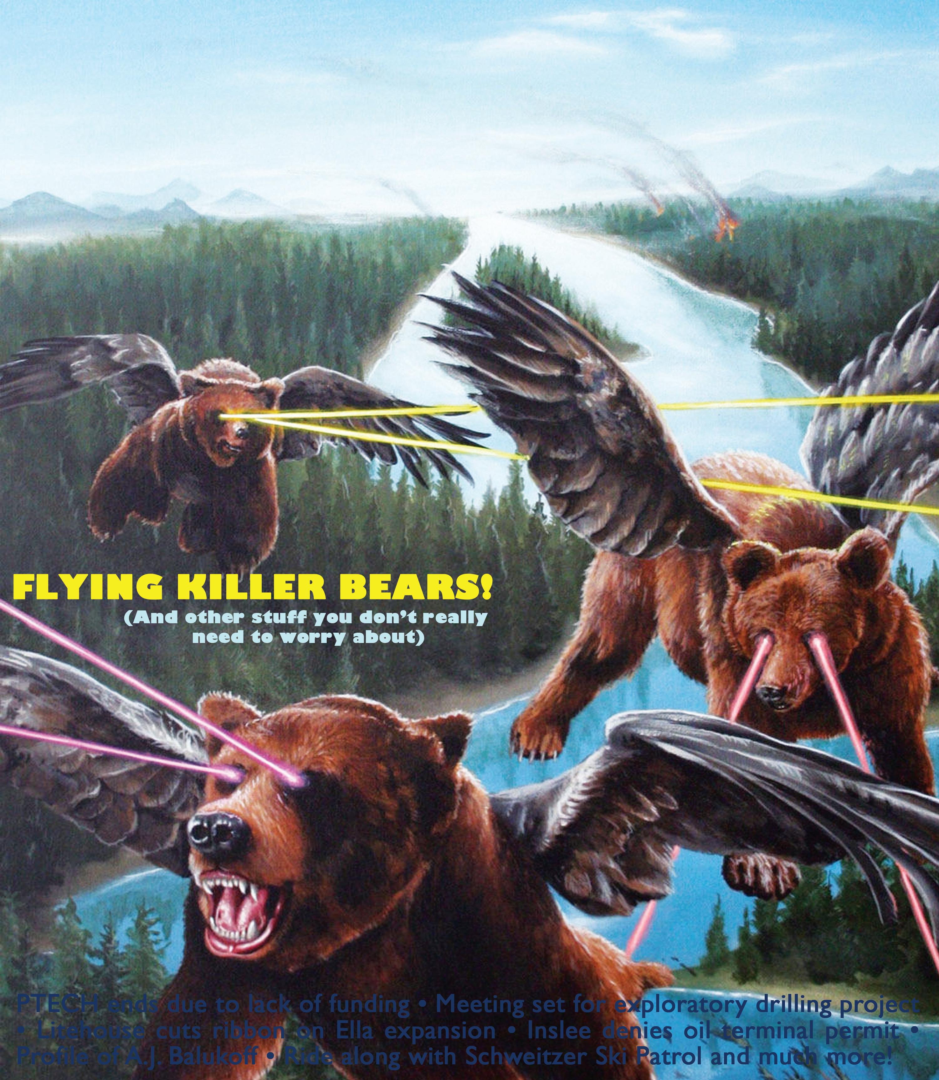 This week’s ridiculous cover features a stock photo we found somewhere on the dark corners of the internet. Look out for flying bears with laser eyes. For real.