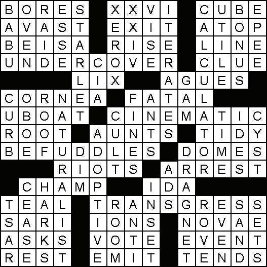 14. Nautical for stop 15. Way out