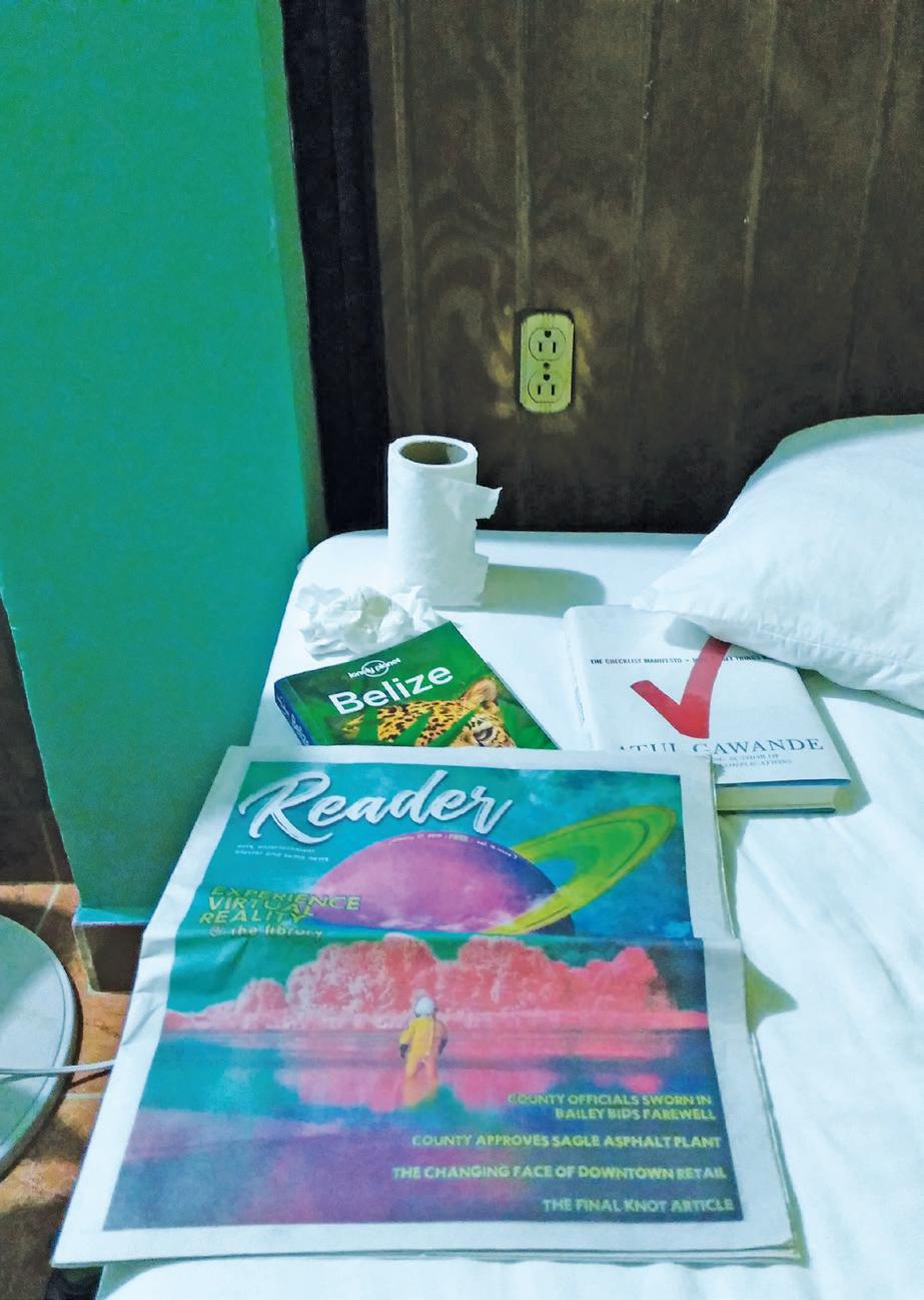 The Reader is printed on recycled paper using soy-based ink. Leftover copies are collected and recycled weekly, or burned in massive bonfires to appease the gods of journalism. Free to all, limit two copies per person
