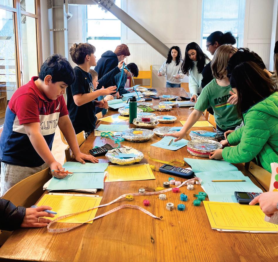 Sixth graders celebrated Pi Day with a plethora of pi-themed activities. Students created a colorful pi chain of paper rings representing each digit of pi and adorned the Learning Commons with a vibrant—and numerically accurate—pi garland. Students competed in a contest where they recited the digits of pi, with the winner reciting 210 digits. There was also a“Piem Slam” where students read aloud pi-themed poems, and as is tradition, students brought in pies to measure the pi of pie…and ate some too!
