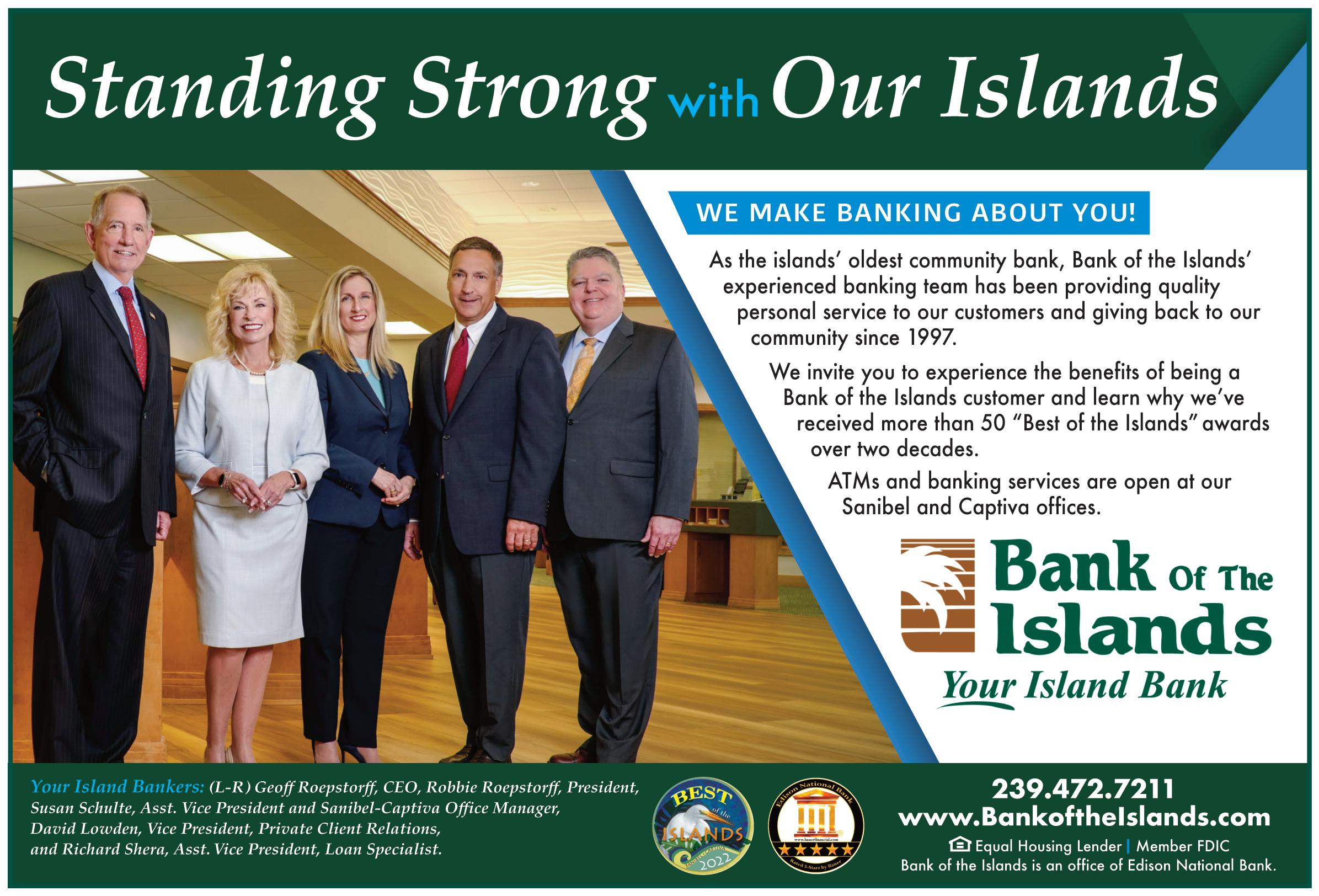 th Sanibel Captiva Community Bank as your lender, whether you’re looking for a commercial or residential loan, you get a local partner and advocate to guide you through the process. We have loan officers in every branch ready to work with you – from start to finish, every step of the way. As a locally owned and operated community bank, all our loan decisions are made right here in Southwest Florida. Recognizing and valuing relationships with our customers allows us to find solutions where other traditional banks fail. Choose a local lender you can bank on. NMLS #411904 Funded $2.4B+ in loans since 2003 11 loan officers located throughout SWFL Quick, local decision-making Direct access to in-house commercial and residential lending experts Kyle DeCicco President and Senior Loan Officer 239-274-6225 kdecicco@sancapbank.com NMLS #1096738 Ready to Get Started? Contact Kyle or David to get connected to the right loan officer for you. David Wright Senior Vice President of Residential Mortgage Lending 239-210-2279 dwright@sancapbank.com NMLS #412536 8 REAL ESTATE GUIDE TO SANIBEL & CAPTIVA - VOL 29 ISSUE 6, JULY - AUGUST 2023