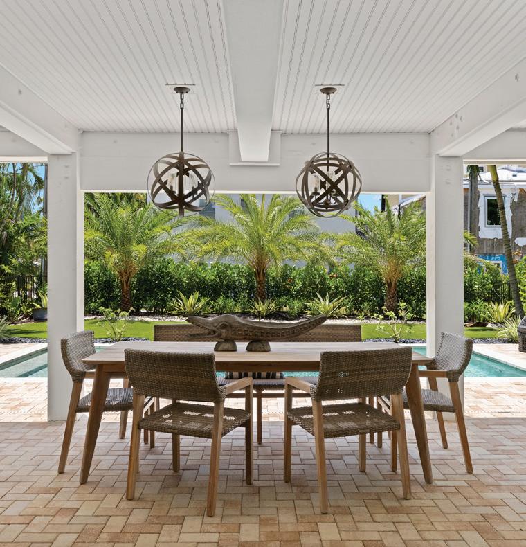 • Five-bedroom-plus-den, four-and-a-half-bath home reflecting influences from New England and Old Florida