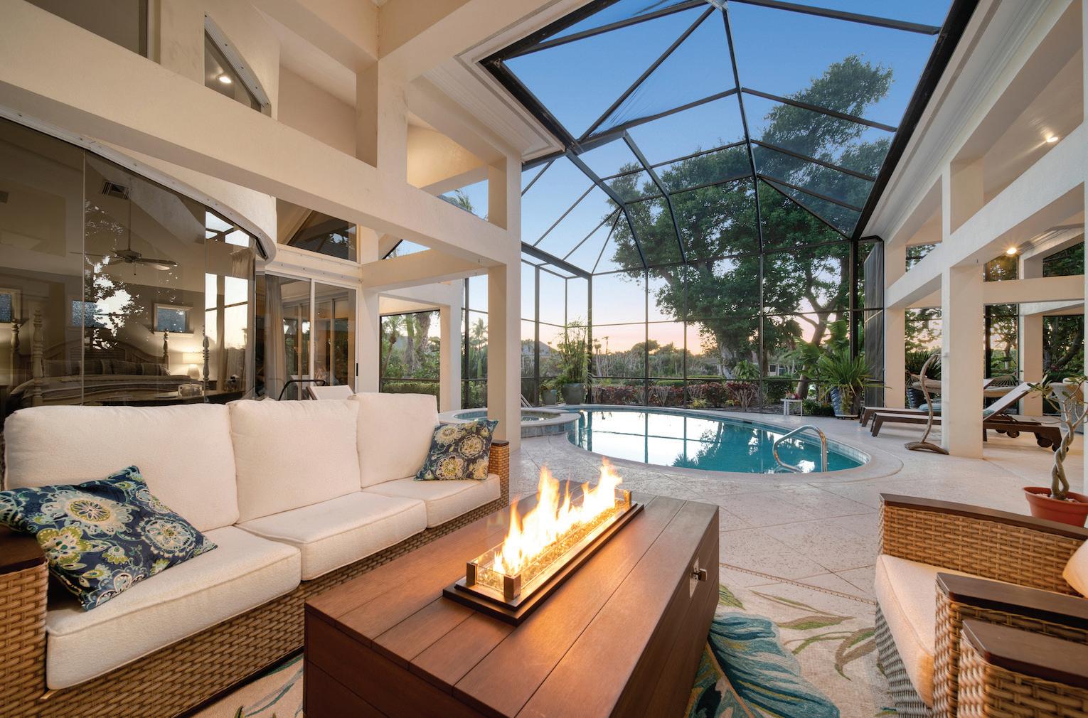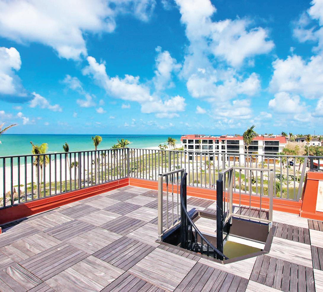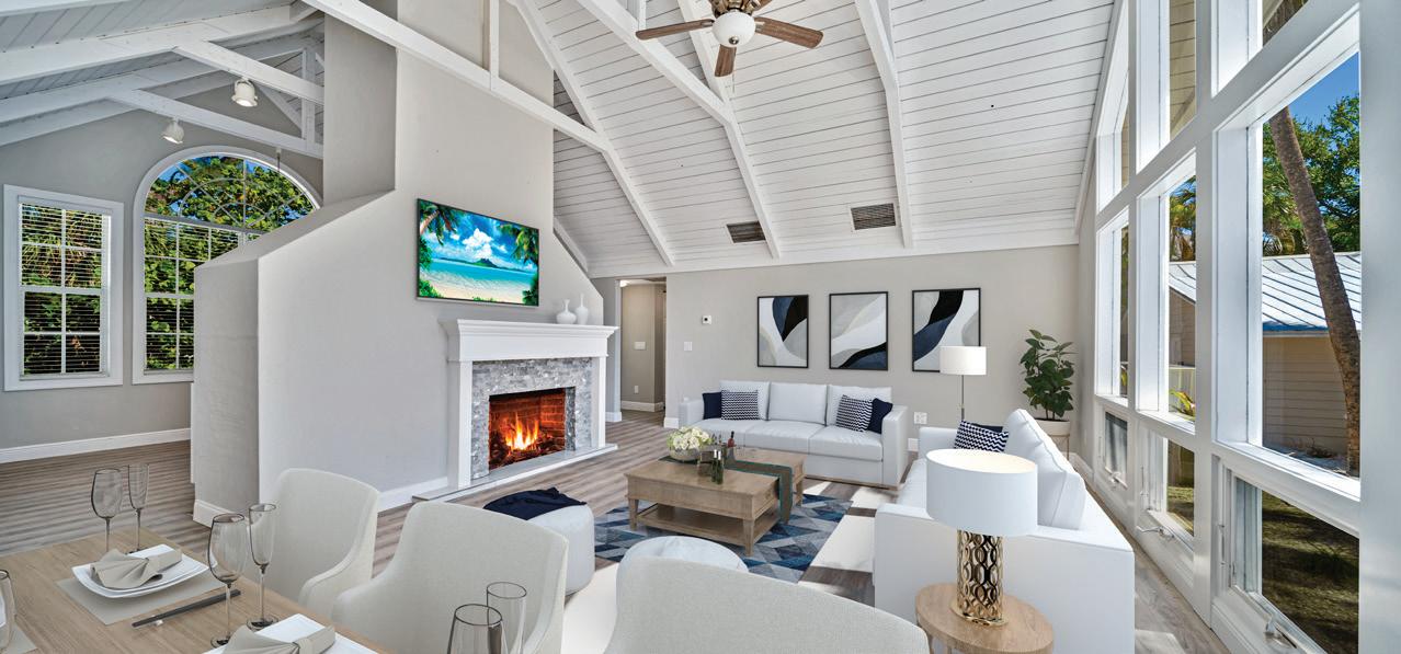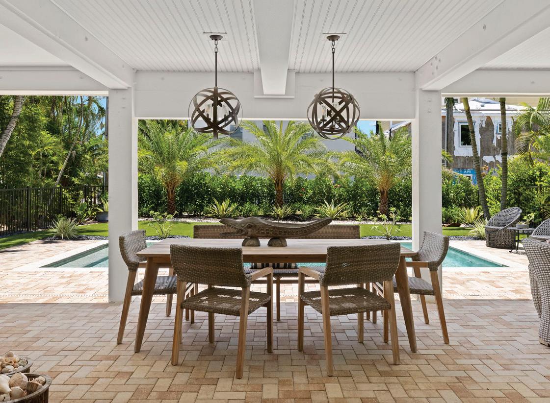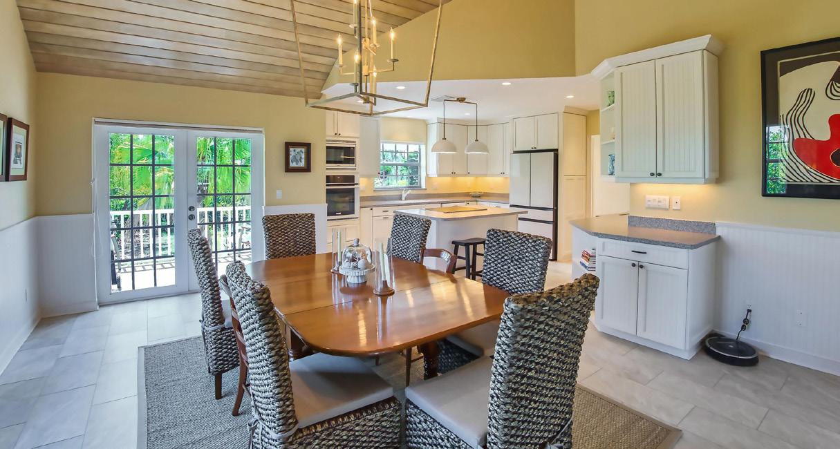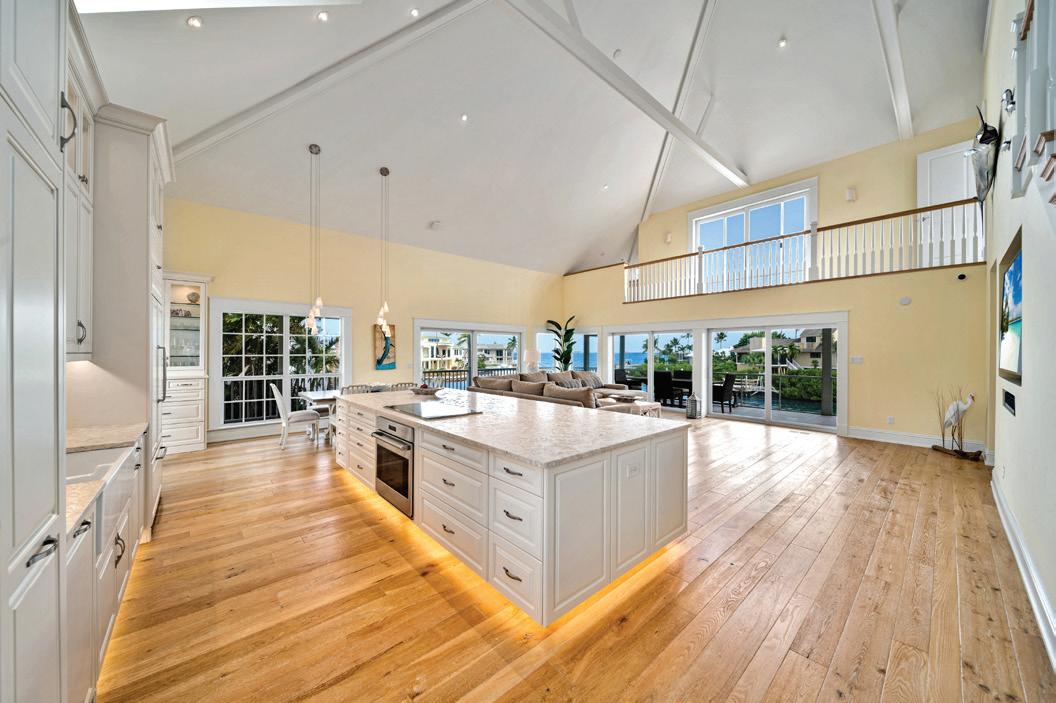 Designed by a protégé of Frank Lloyd Wright and fully remodeled in 2024 this fourbedroom, three-and-a-half-bath home features Google smart home controls, a chef’s kitchen, waterfall quartz countertops, an elevator, a new boat dock and a remodeled saltwater pool with a swim-up table, a spill-over spa and all new equipment.