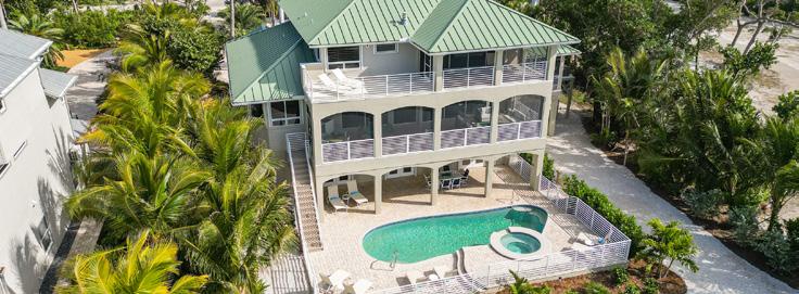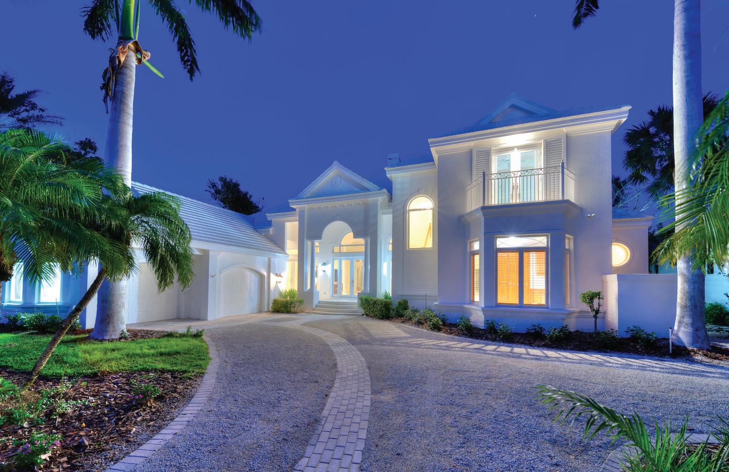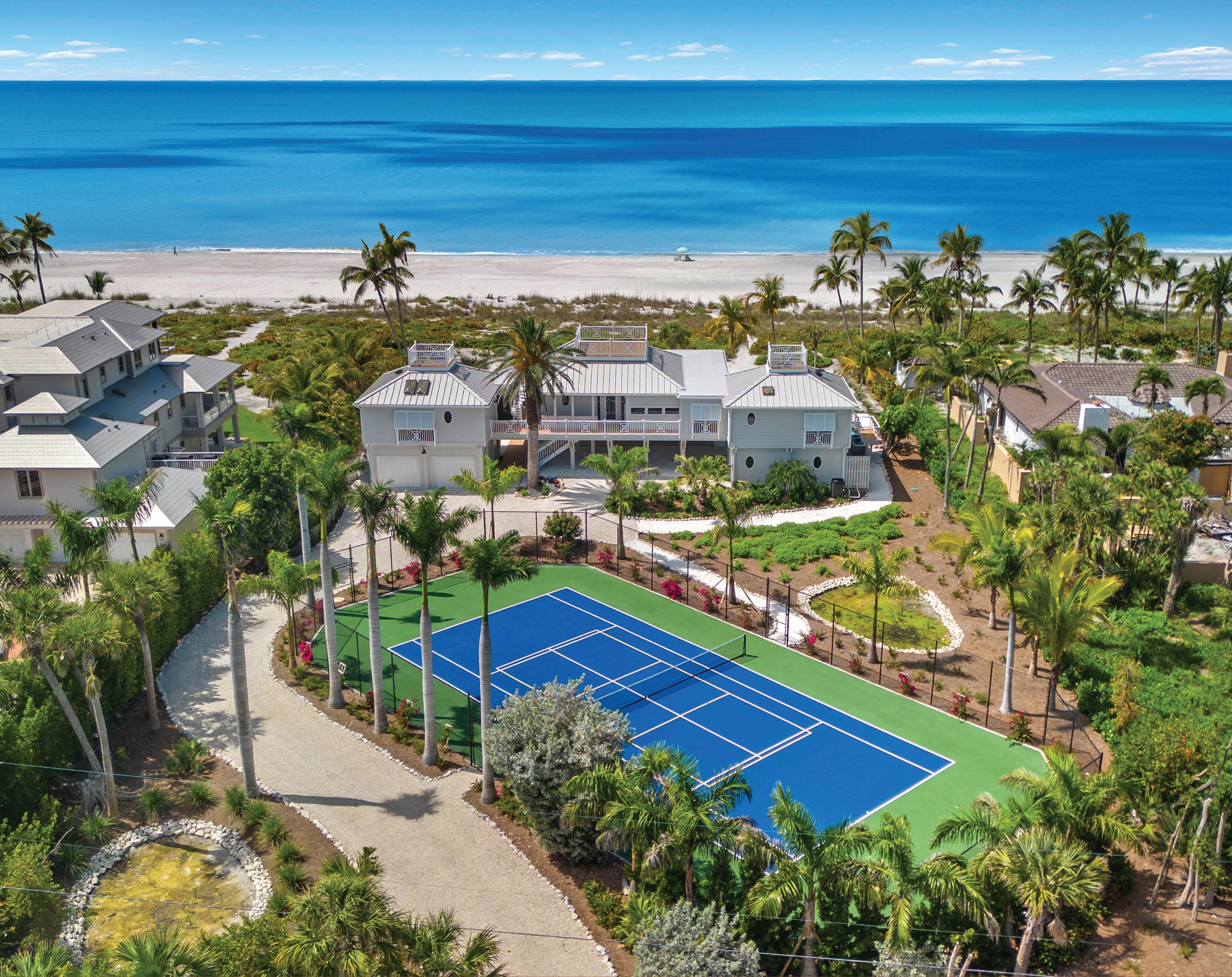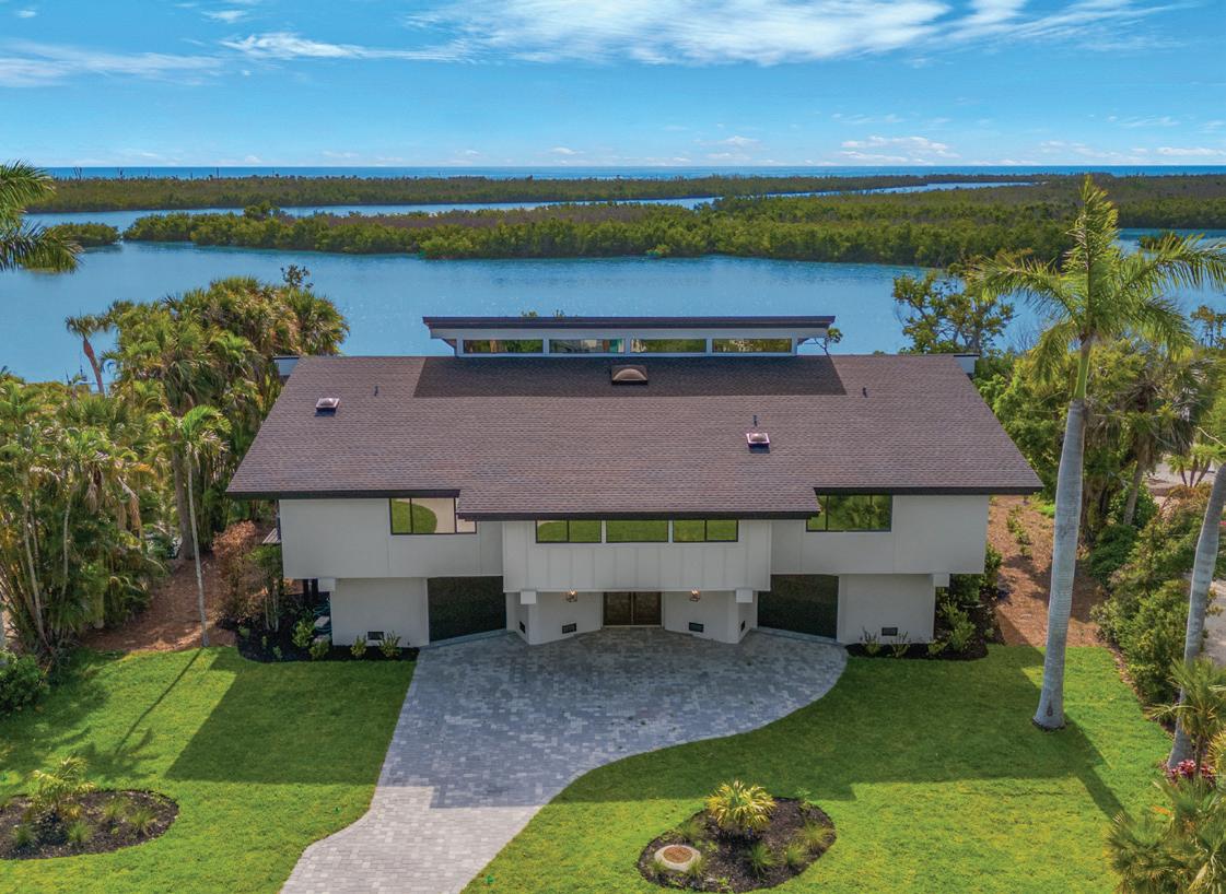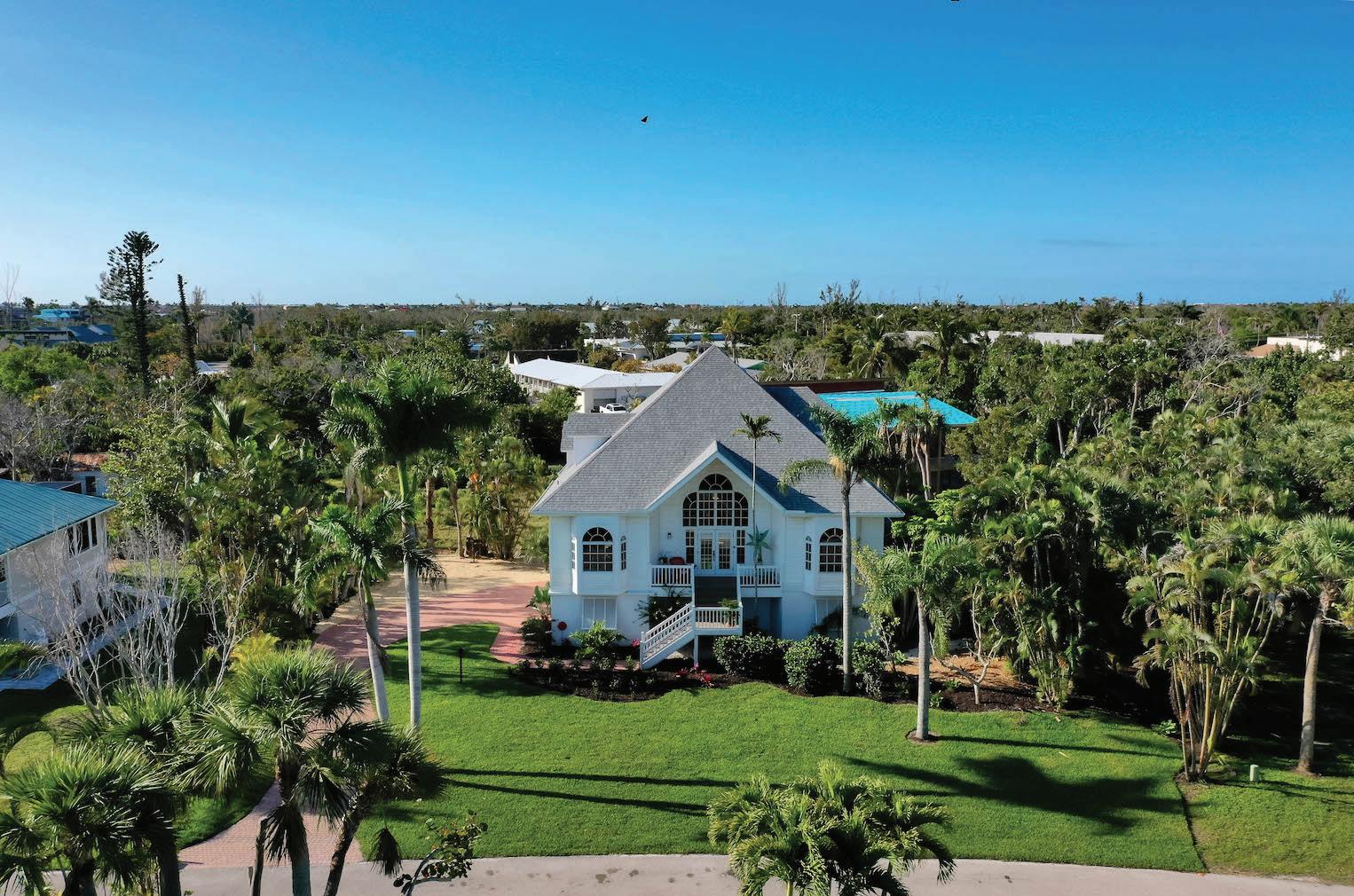 Located at the end of West Gulf Drive, west of Rabbit Road, this five-bedroom, three-full and one-half-bath home features 25-foot ceilings in the great room, and a private pool. Pecan floors and a private elevator. 7 10 12 8 9 11