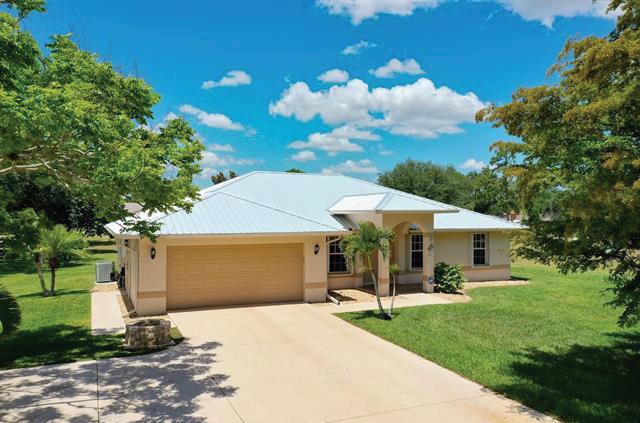 Four-bedroom, three-bath plus den home featuring an open floor plan, vaulted ceilings, and a large pool area complete with a tiki hut and poolside dining area. The home is a short distance to the beach and has Gulf access from your private dock.