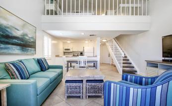 Rare opportunity to own this 2 bdr, 2 bth Tennis Villa. Top floor corner location provides more privacy and views of beautiful sunsets. In Resort rental program with unlimited owner use. Renting now! Short walk to the beach and Village. Don’t miss this opportunity!