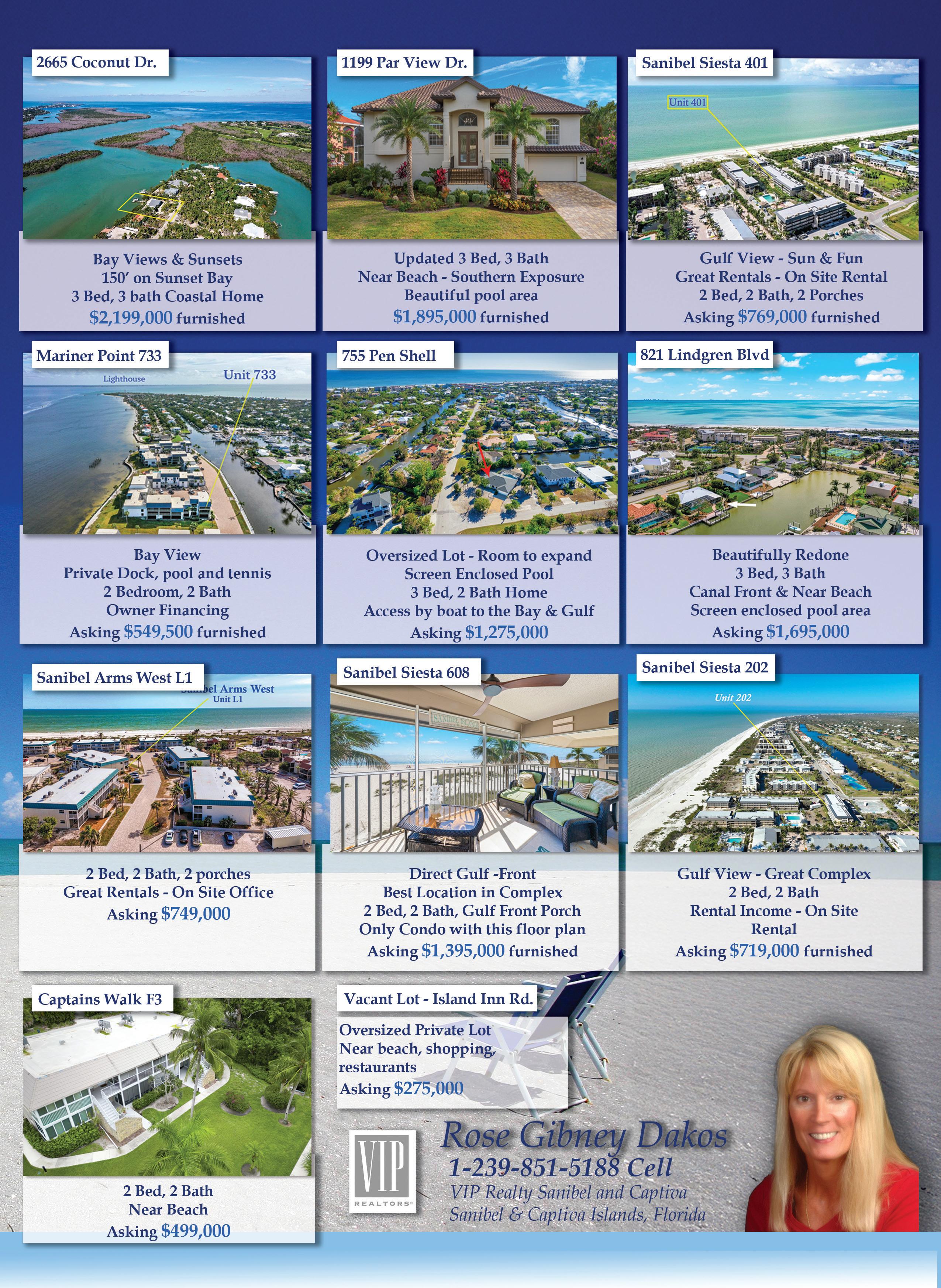Follow our Friday real estate blogs & contact us to have island residen�al inventory lists emailed to you. Also updated weekly, they cover Sanibel & Cap�va condos, homes, & lots.