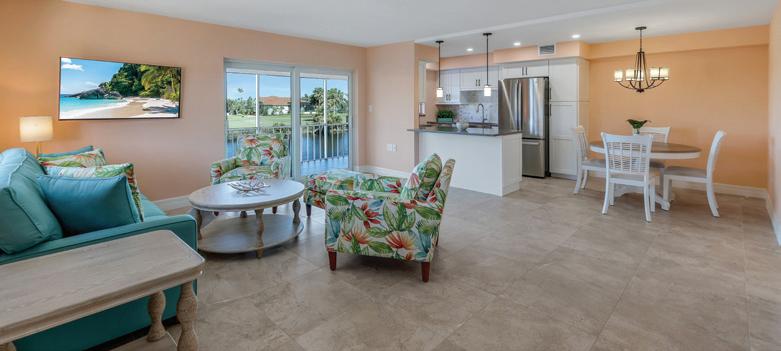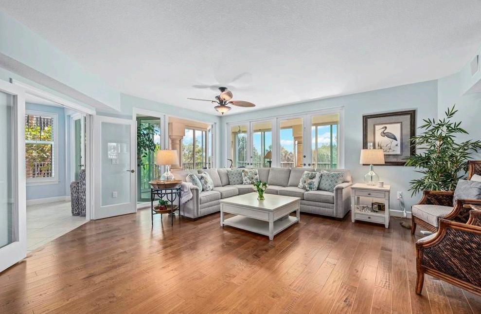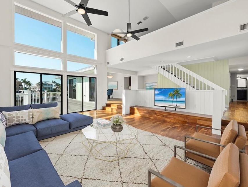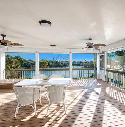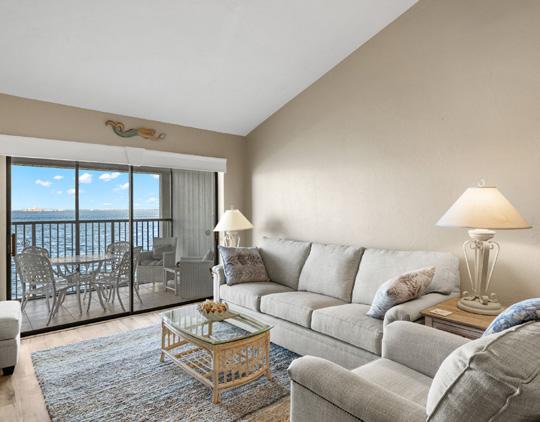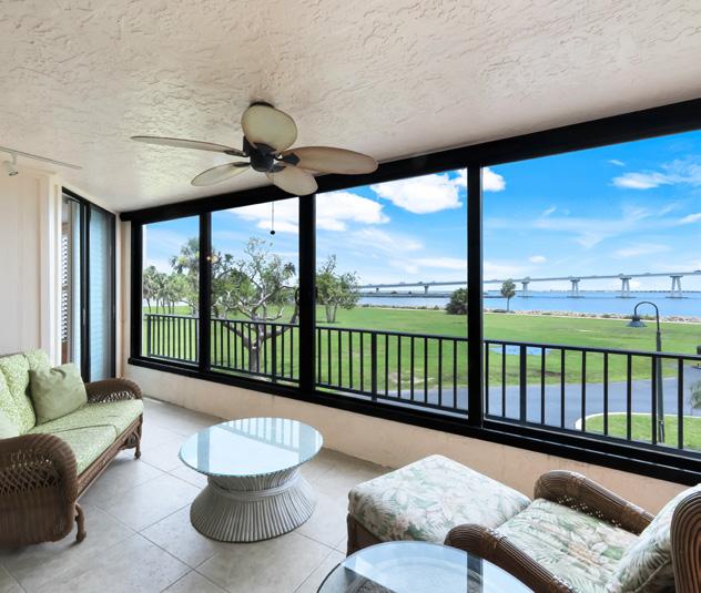 This View From Mariner Pointe #312 2nd Floor Corner Privacy Unique 2‐bedroom 2‐bath condo with private canal‐view open entry‐deck. There is no unit above. View shown is from bayside glass‐enclosed balcony that expands living space. Split 2‐bedroom 2‐bath floorplan plus great room. Steps to boat dockage, fishing pier, pools, BBQs, tennis/pickleball, & more. 760 Sextant Dr, #312—$399,000 furnished